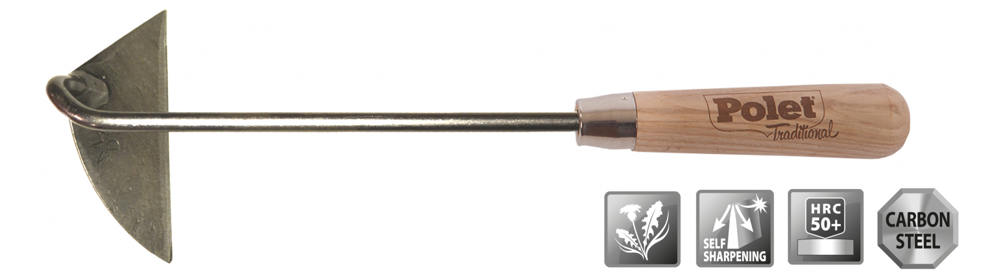 Hand-forged right-handed dutch weeder of carbon steel with ash handle