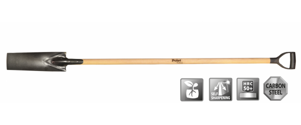 Hand-forged spade from high-quality carbon steel with ash D-handle