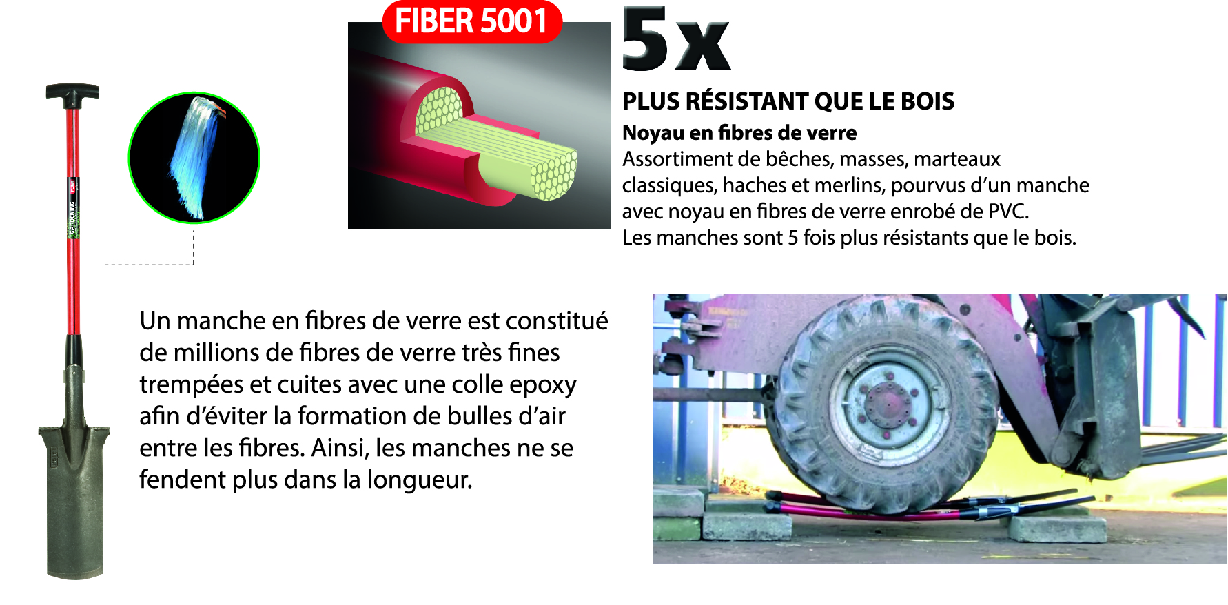 ·Acier au bore avec manche en fibre de verre (5x plus résistant que le bois)