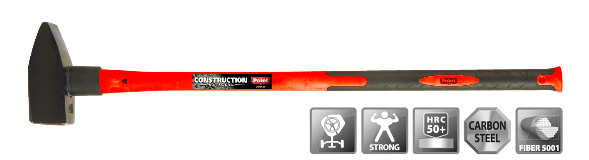 Masse avec un manche avec un nuyau en fibre de verre (5x plus résistant que le bois) et poignée ergonomique