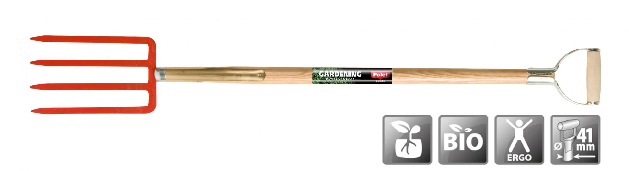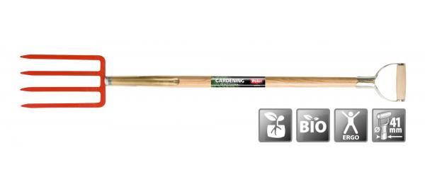 Fourche à bêcher avec manche férule en frêne, légèrement courbé