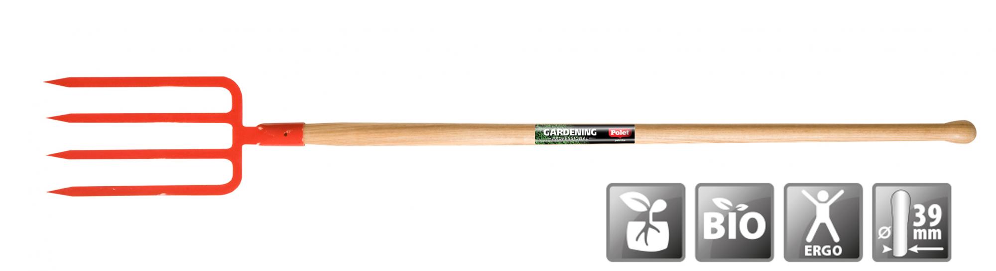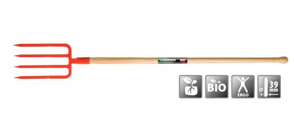 Fourche à bêcher avec manche boule en frêne, légèrement courbé