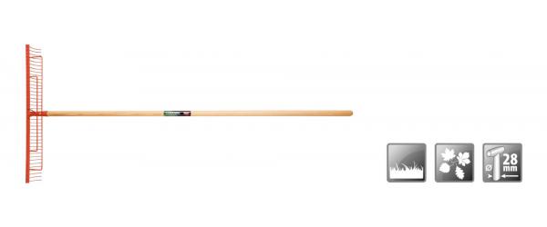 Gazonhark met essen steel, ideaal om gemaaid gras en bladeren samen harken