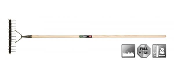 Verticuteerhark met essen steel, ideaal voor verwijderen van mos en ander onkruid uit grasveld, handig en erg geschikt voor een gazon met een kleine oppervlakte