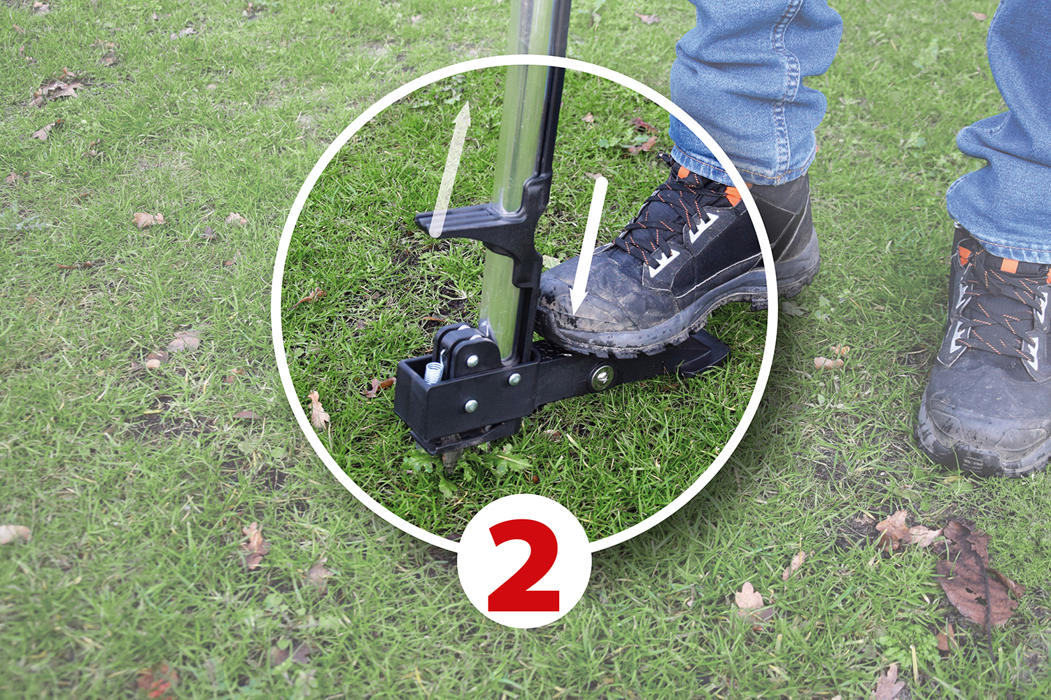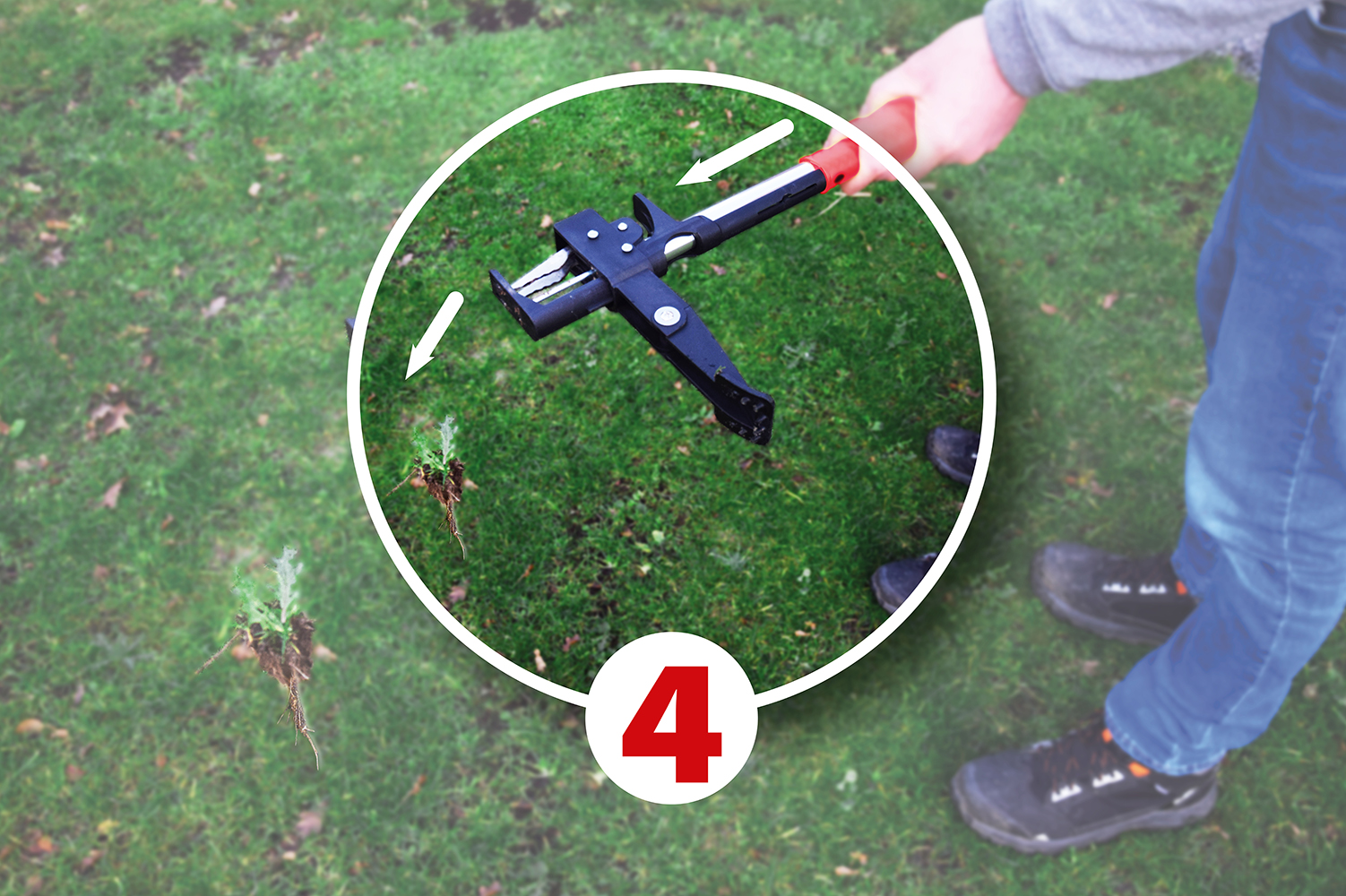 Dankzij het voetplatform kan er extra kracht gezet worden om ook in hardere grond door te dringen. De grijppinnen uit roestvrij staal dringen diep in de grond, grijpen de wortel van het onkruid rondom beet en halen deze uit de grond.
