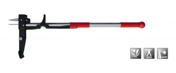 De onkruidsteker is bovendien gemakkelijk en comfortabel in gebruik: men hoeft niet door de knieën om het onkruid te verwijderen.