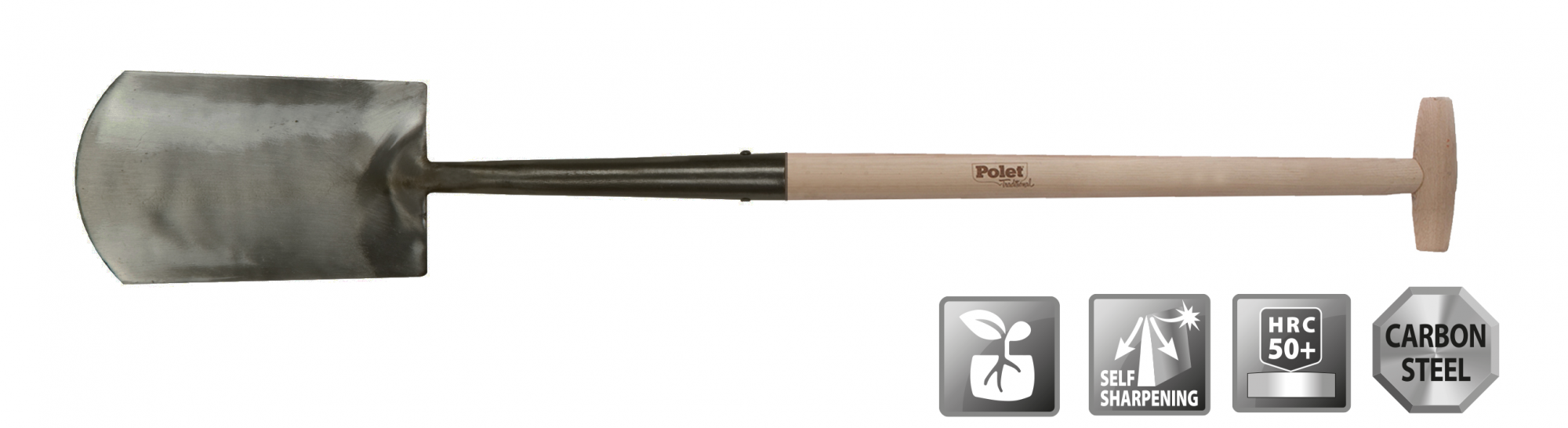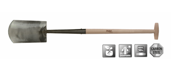 Handgesmede zwanehalsspade uit hoogwaardig koolstofstaal met essen steel