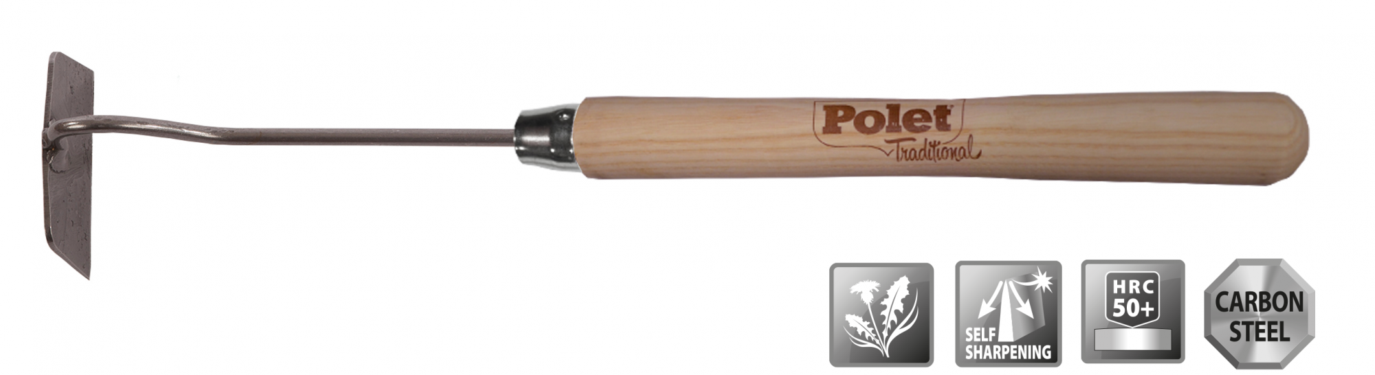 Handgesmeed tuinhakje uit koolstofstaal met essen handvat